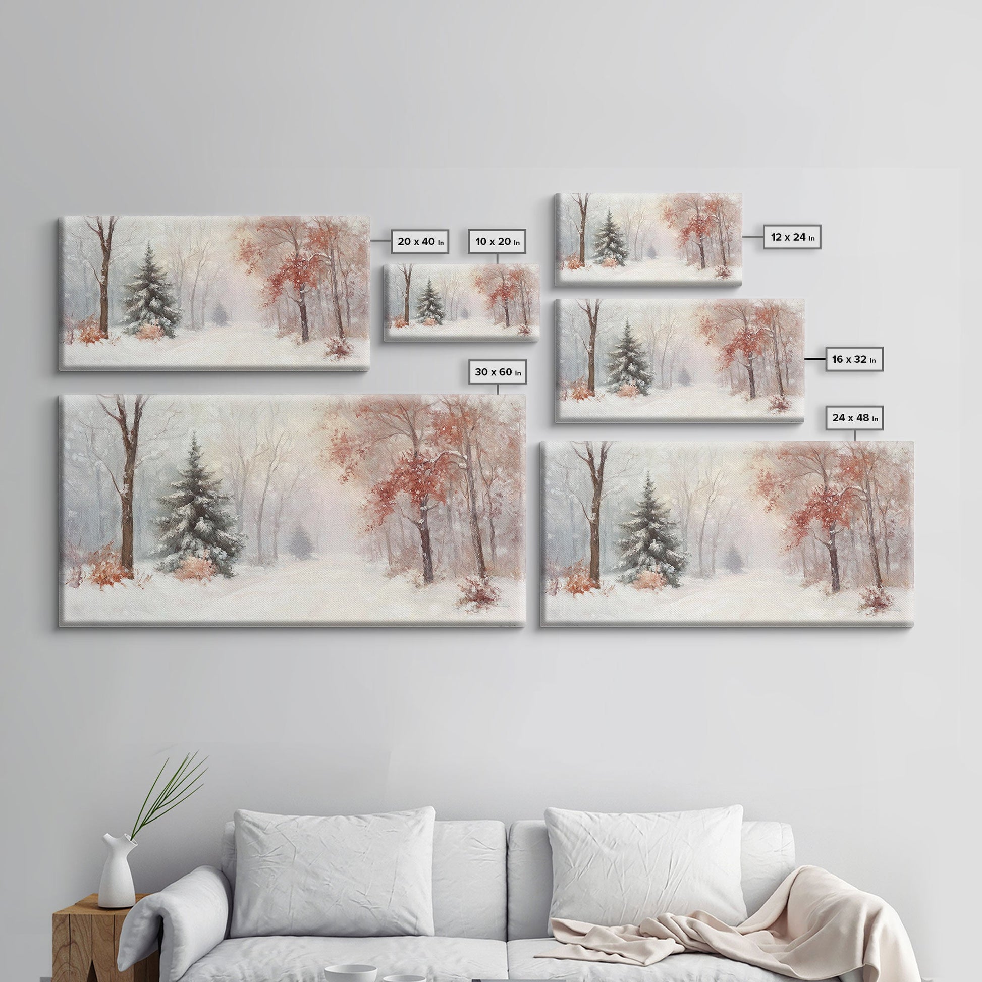 Winter In The Forest, Snowy Landscape Painting, Winter Art, Framed Canvas Print, nostalgic fall festival art for cozy seasonal home decor