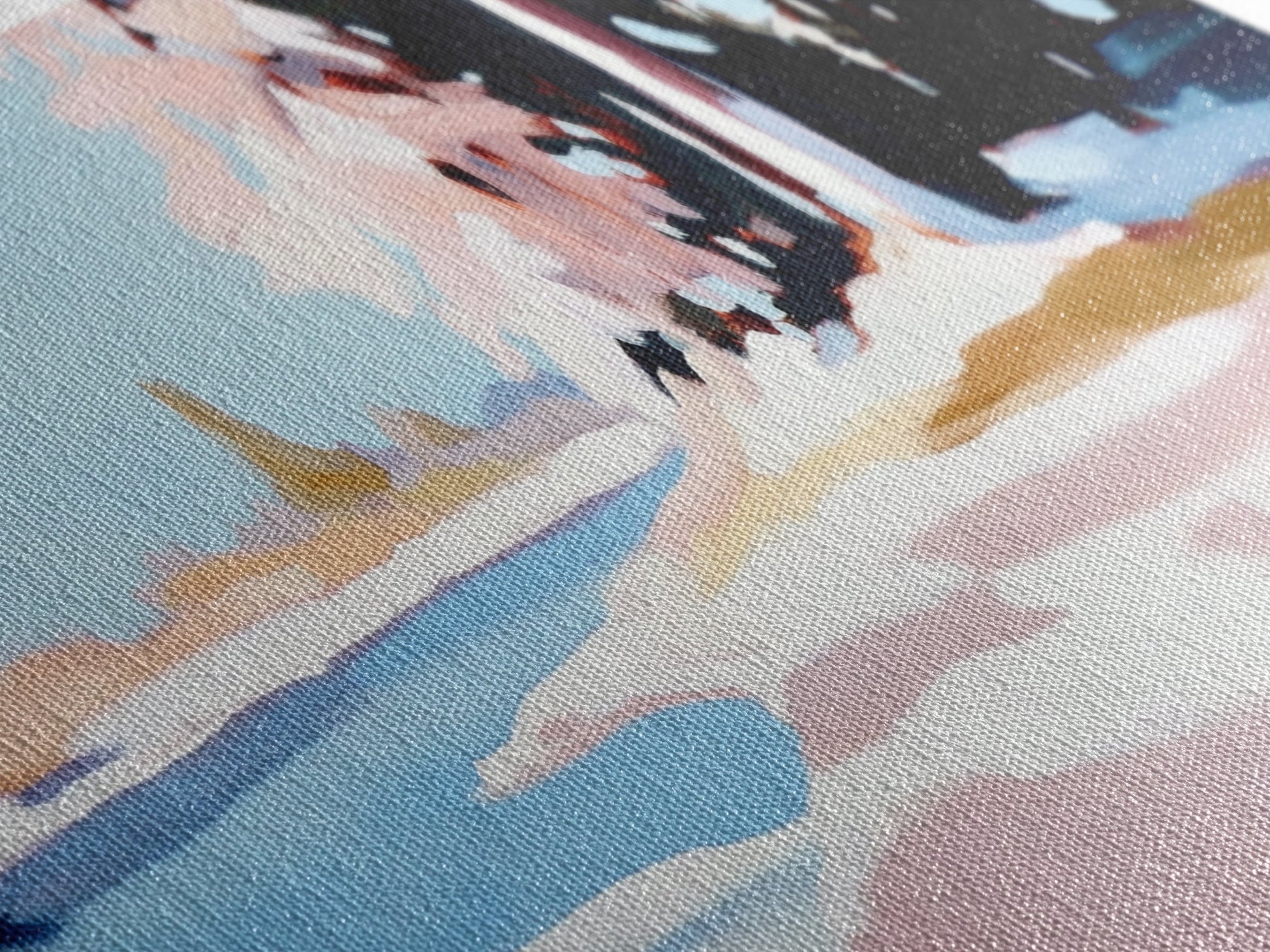 Most of our canvases are made in the USA, with the exception of canvases ordered with the light oak unstained frames, and any large canvases (24x48, 30x60, 16x48 and 20x60) ordered WITH a frame. These are temporarily made in and shipped from Europe, while we try to find a more consistent supplier in the USA.