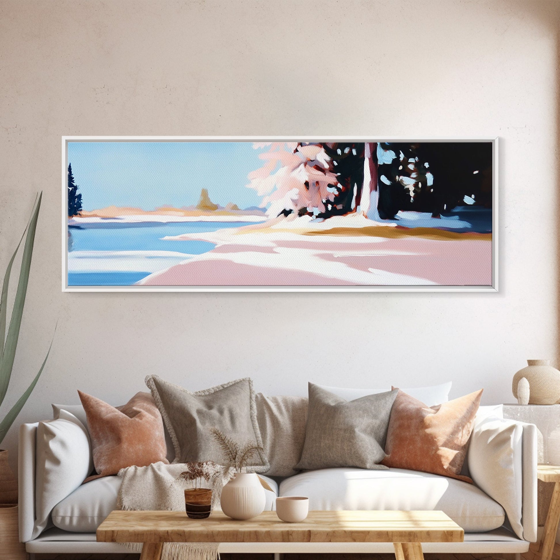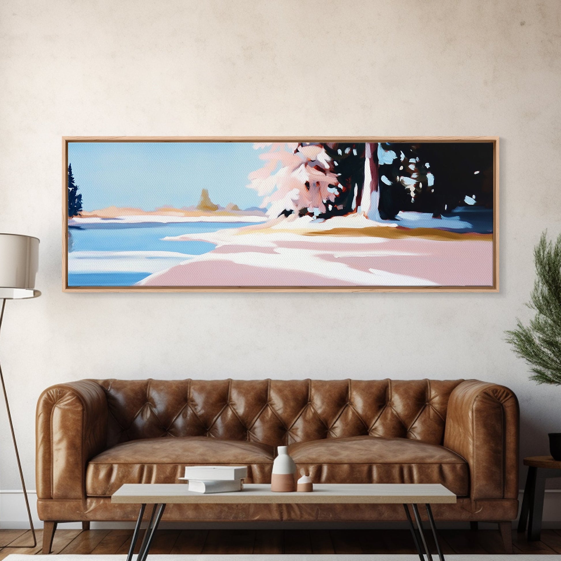 Winter Landscape, Snowy Trees, Nature Art, Framed Canvas Print, Cozy Wall Decor, Scandinavian Painting, Winter Scene, Bedroom Artwork