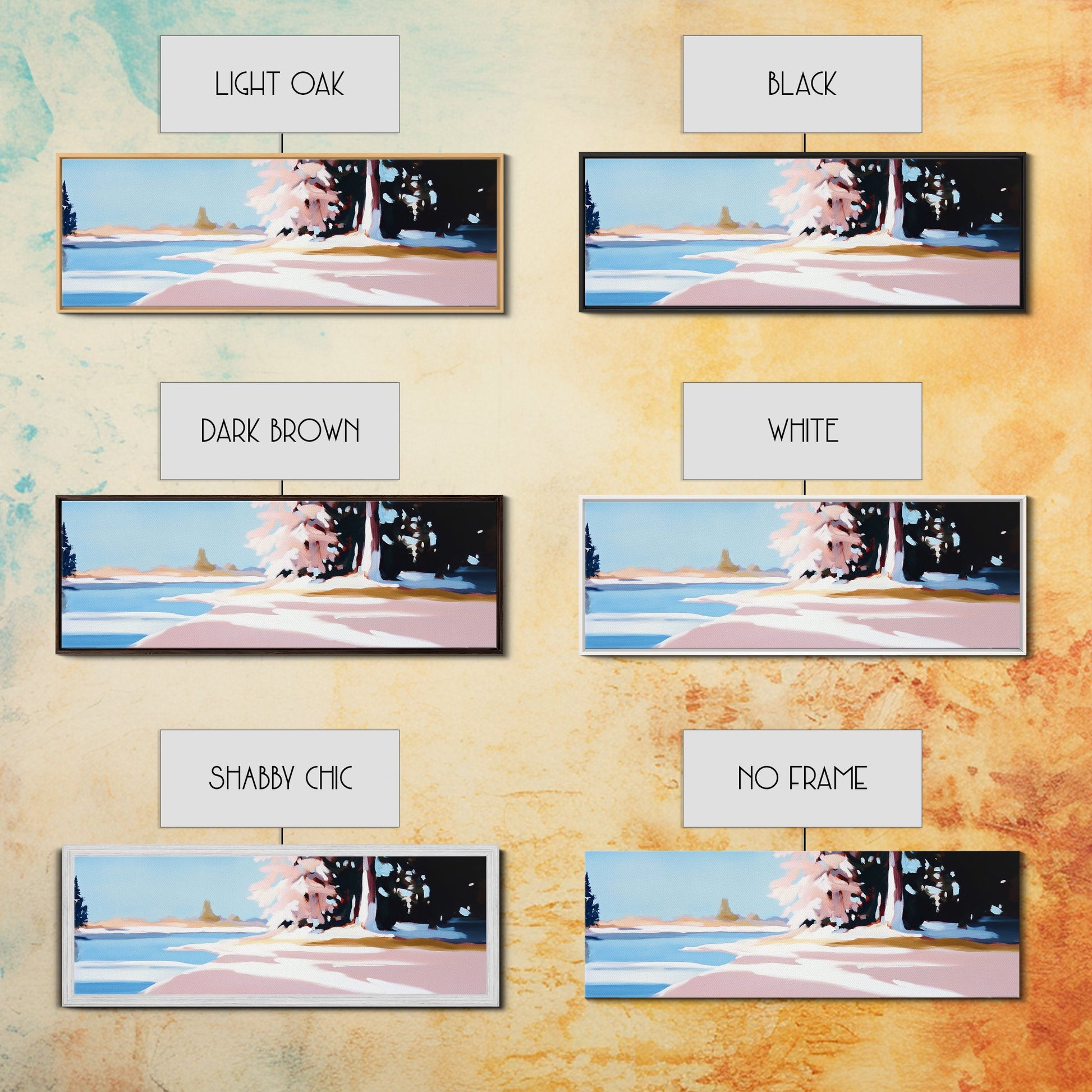 *Optional frames add a total of 1.5 inches to each dimension, for example a 10x20 canvas with a frame will be 11.5 by 21.5 inches total. All framed canvas are 1.5" total depth.