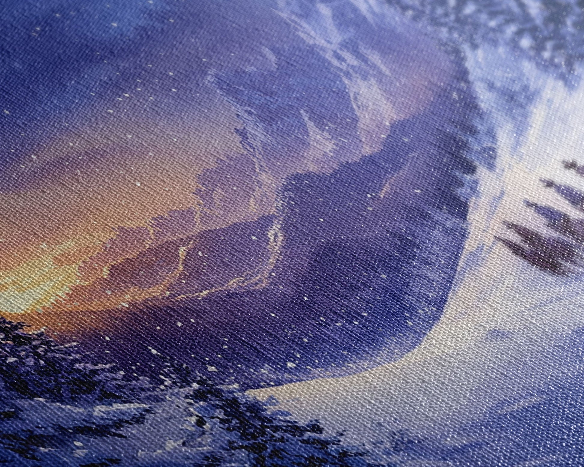 Most of our canvases are made in the USA, with the exception of canvases ordered with the light oak unstained frames, and any large canvases (24x48, 30x60, 16x48 and 20x60) ordered WITH a frame. These are temporarily made in and shipped from Europe, while we try to find a more consistent supplier in the USA.