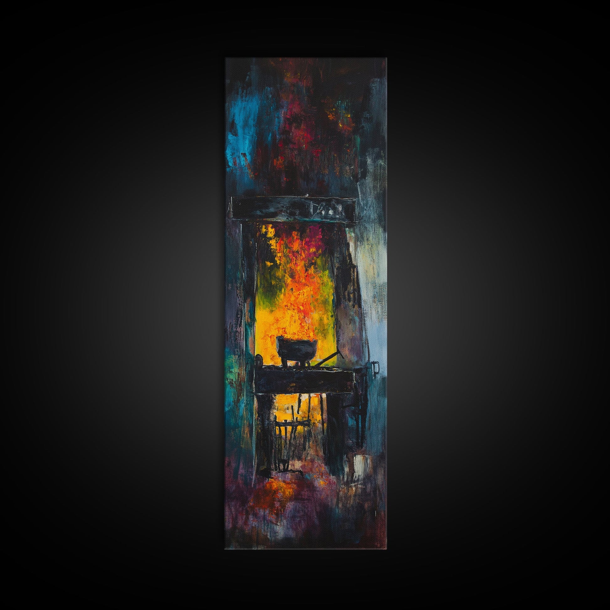 Witch cauldron, dark romance painting, moody art, gothic decor, black magic wall art, Halloween art, framed canvas print