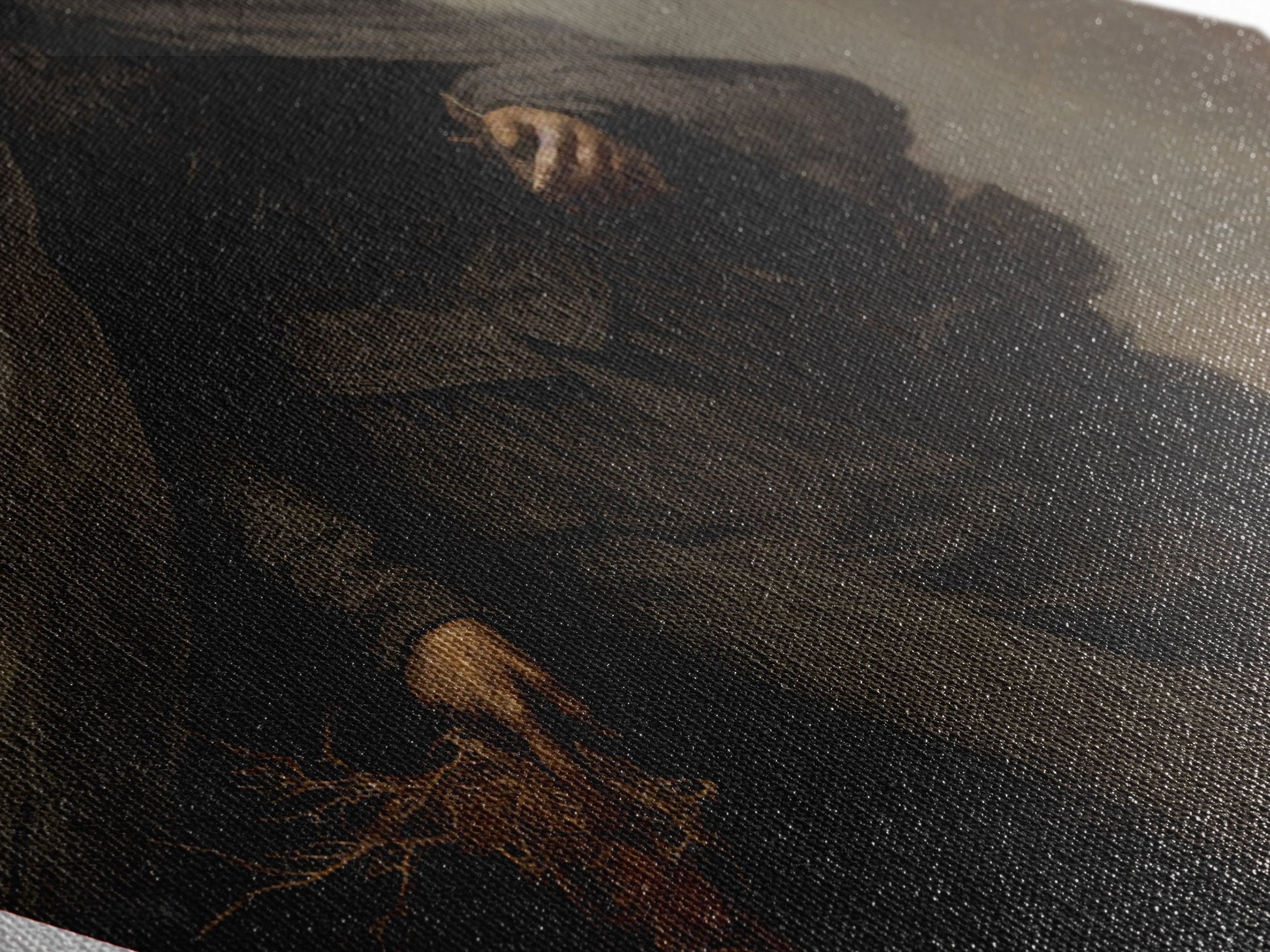 "Witch in the Woods" Canvas Embossed Print of Gothic Forest Sorceress, Diamond Shaped Art for Dark Academia Halloween or Victorian Occult Decor