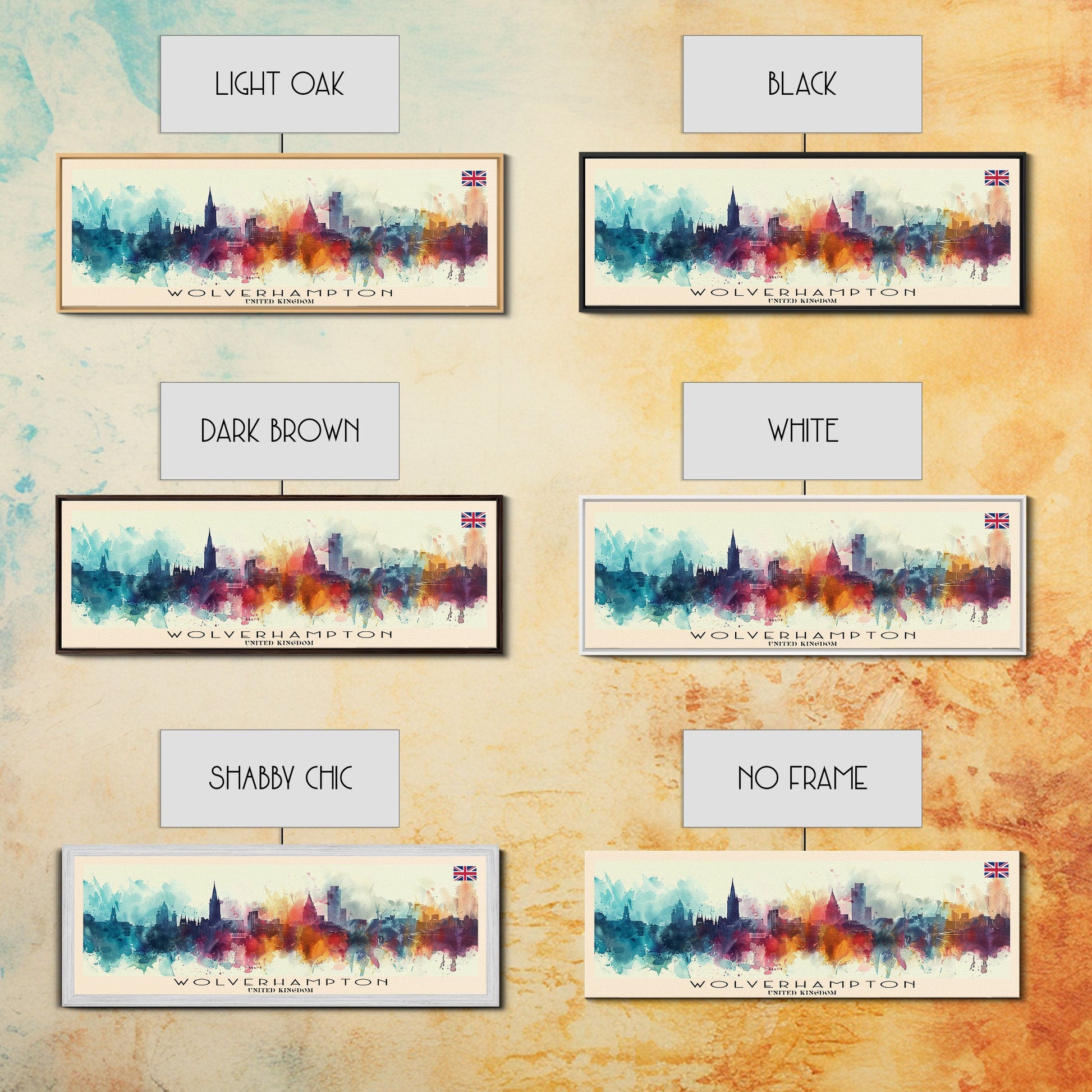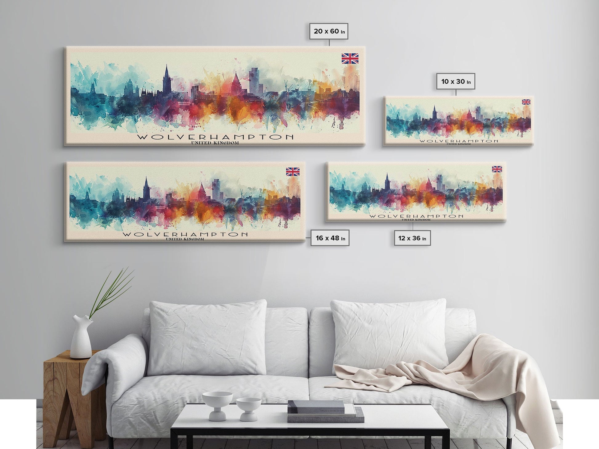 Wolverhampton United Kingdom Panoramic Travel Poster, Framed Canvas Print or Metal Wall Art, Travel Art, Home Decor, Panoramic Painting, Midcentury Art