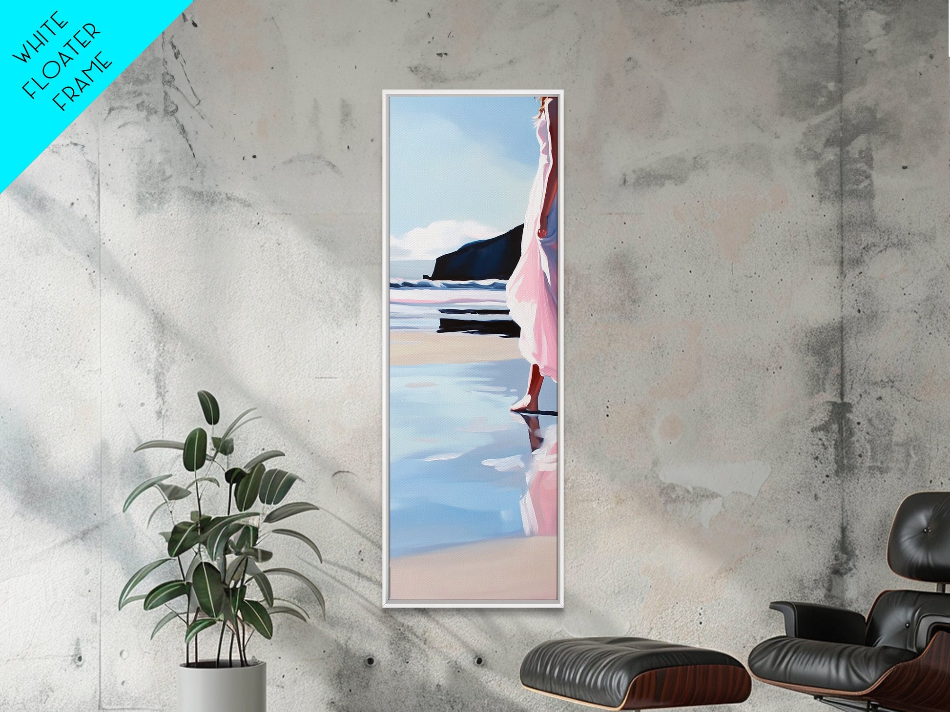 Woman by Ocean, Coastal Art, Canvas Print, Romantic Seascape, Minimalist Decor, Modern Art, Pastel Beach Scene, Living Room Wall Art