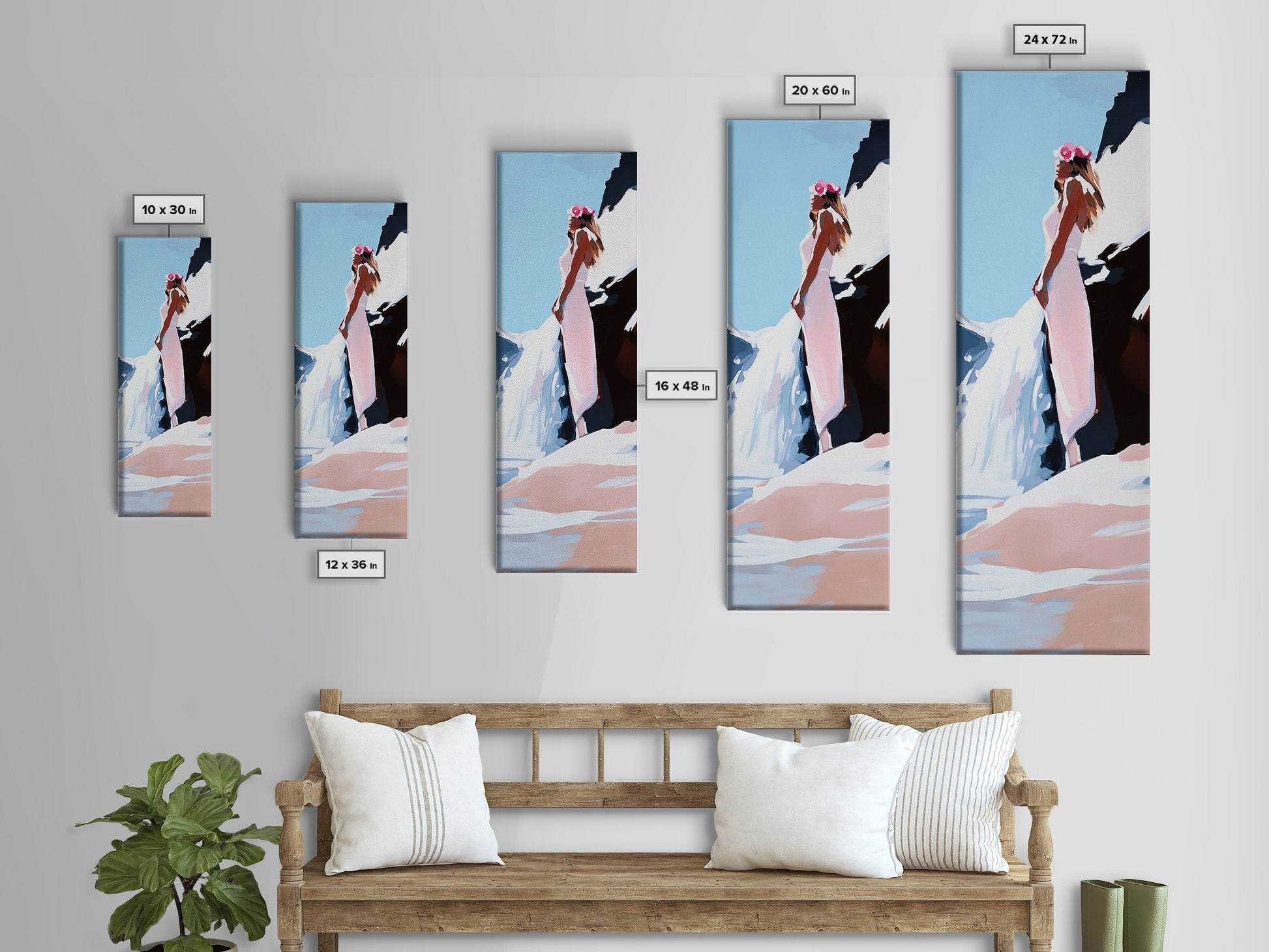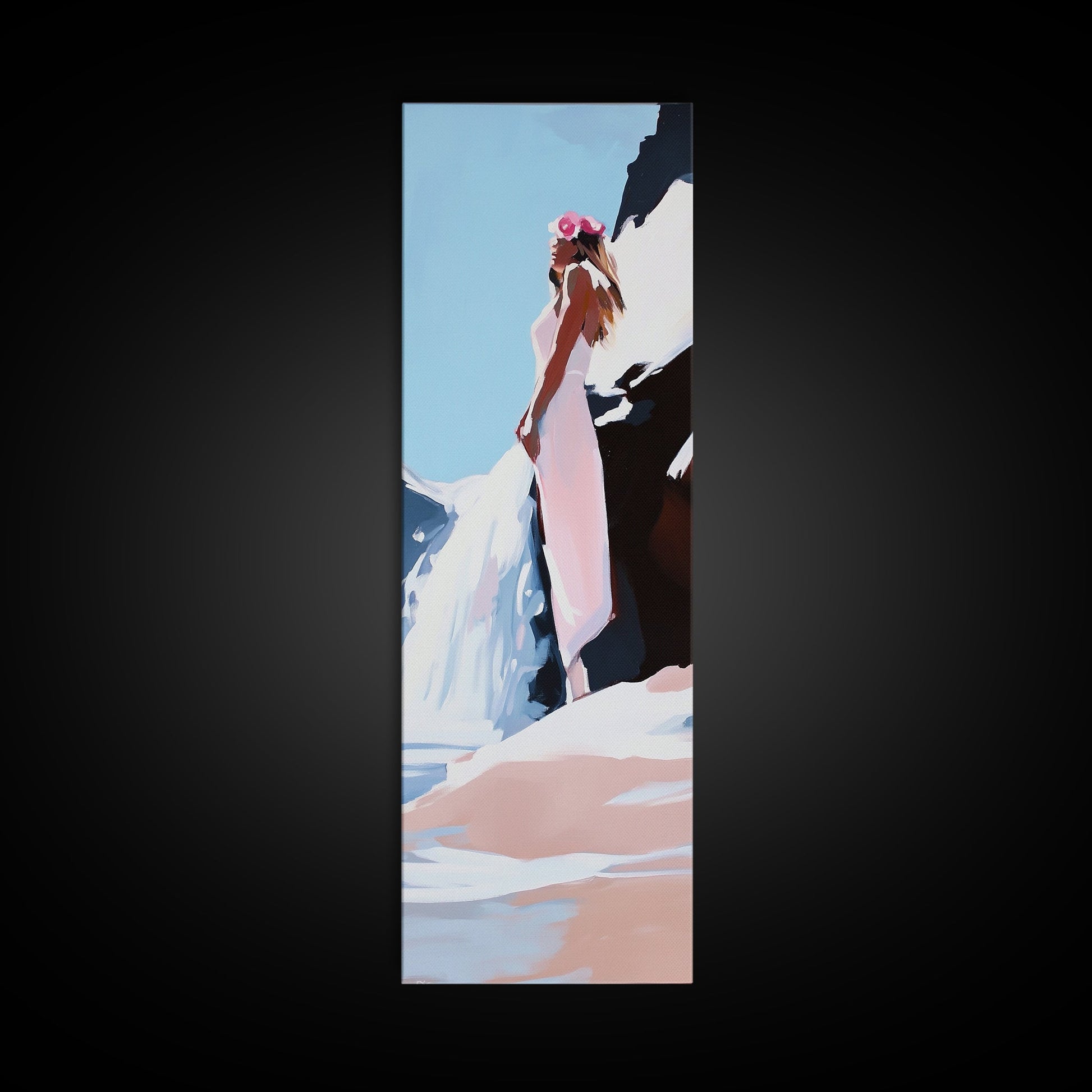 Woman in Nature, Ocean View, Beach Scene, Canvas Print, Romantic Art, Soft Aesthetic, Minimalist Wall Art, Feminine Energy, Serene Mood