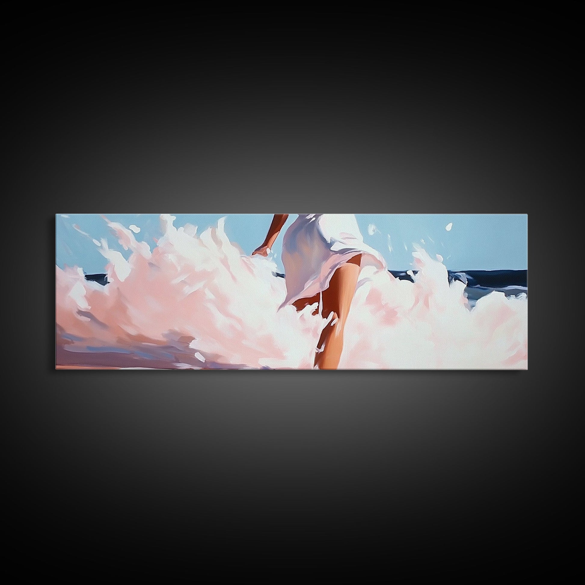 Woman in Waves, Coastal Elegance, Romantic Beach Art, Canvas Print, Ocean Aesthetic, Dreamy Home Decor, Living Room Wall Art