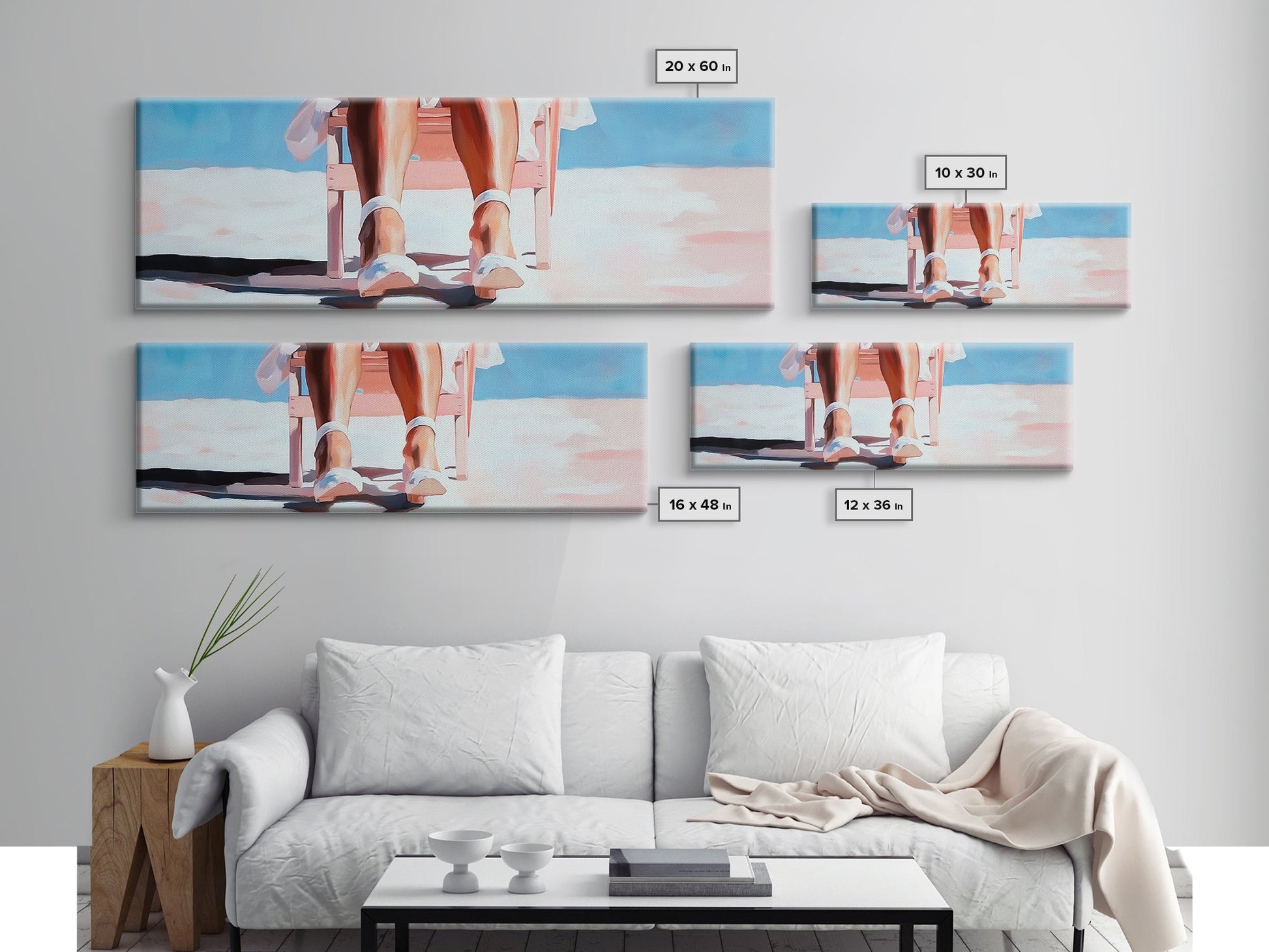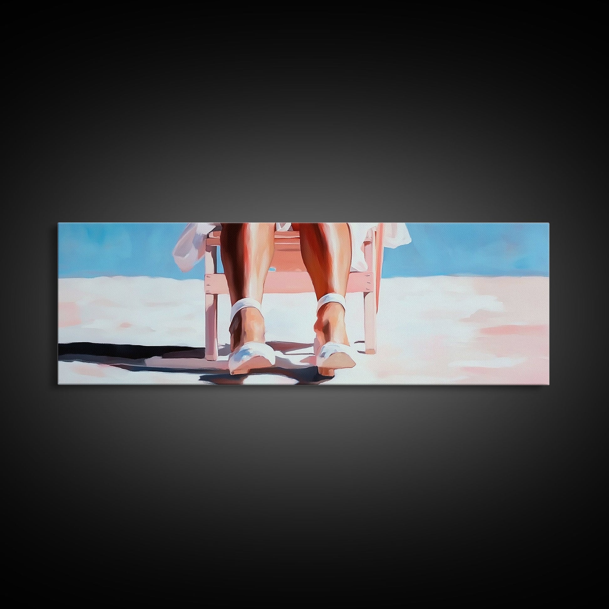 Woman Relaxing, Beach Chair Art, Coastal Summer Scene, Framed Canvas Print, Minimalist Boho Decor, Serene Seaside Home Artwork