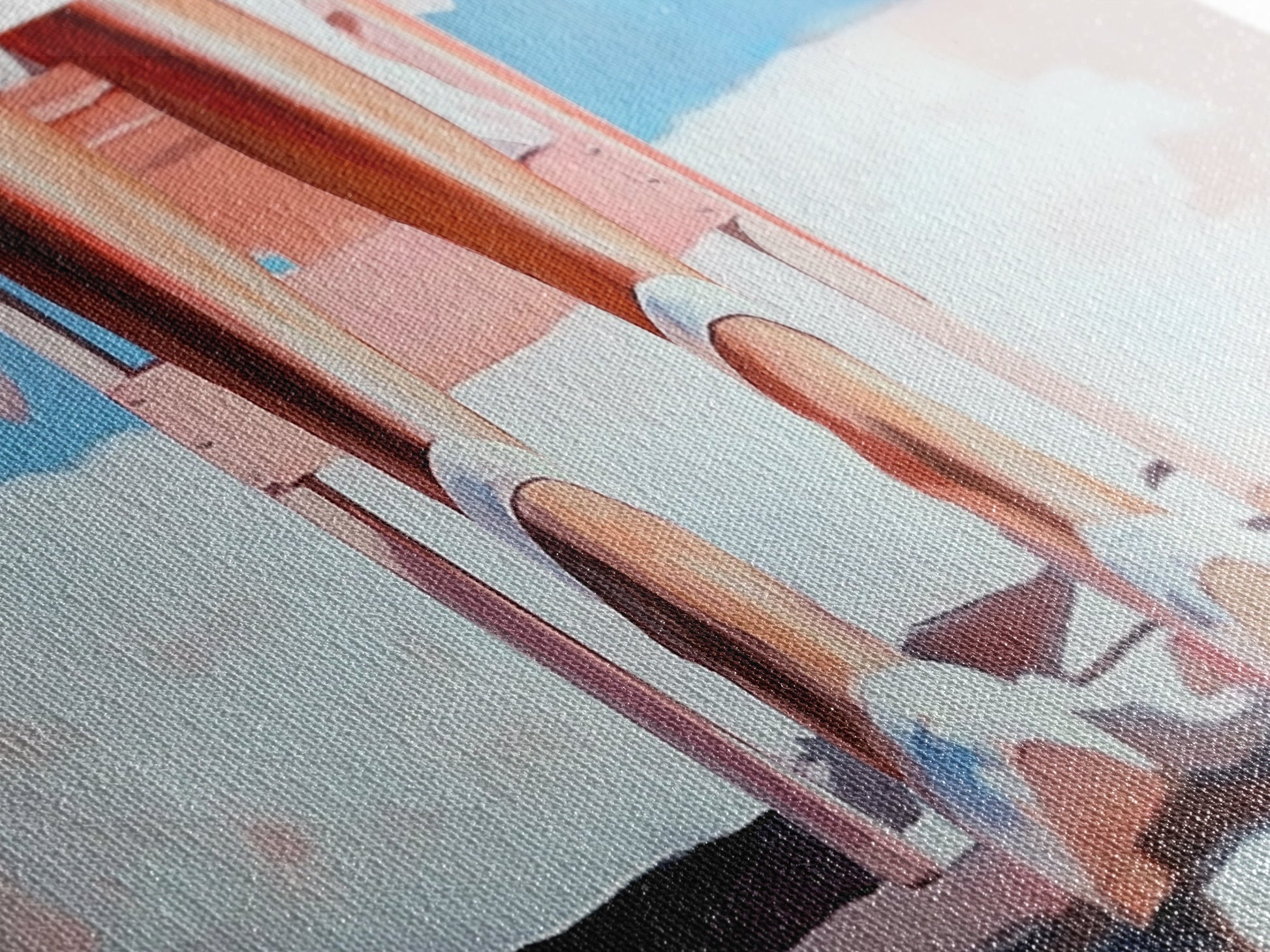 Most of our canvases are made in the USA, with the exception of canvases ordered with the light oak unstained frames, and any large canvases (24x48, 30x60, 16x48 and 20x60) ordered WITH a frame. These are temporarily made in and shipped from Europe, while we try to find a more consistent supplier in the USA.