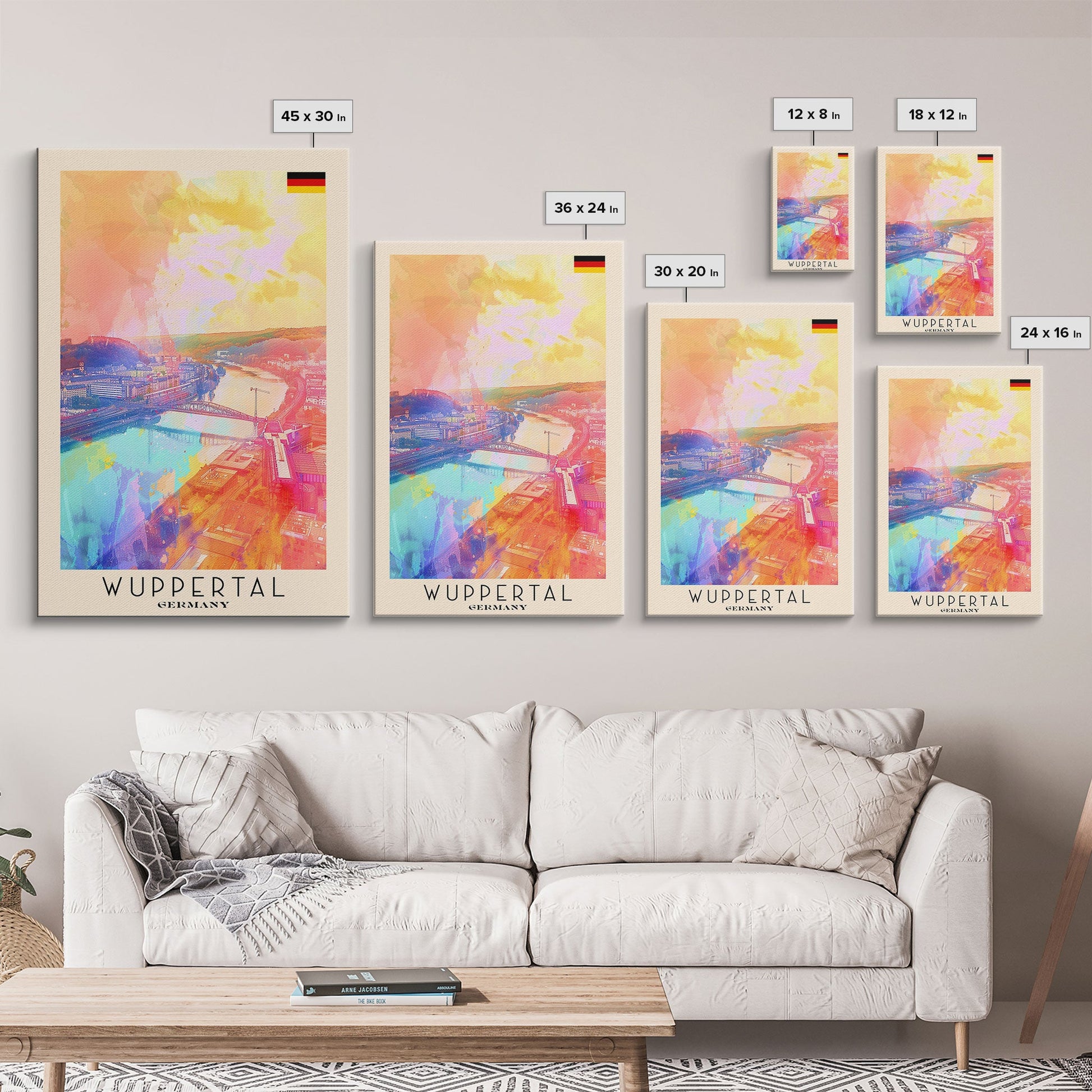 Wuppertal Germany Travel Poster Framed Canvas Print, Watercolor Painting, Urban Wall Art, Home Decor, German Cityscape, Artistic Gift