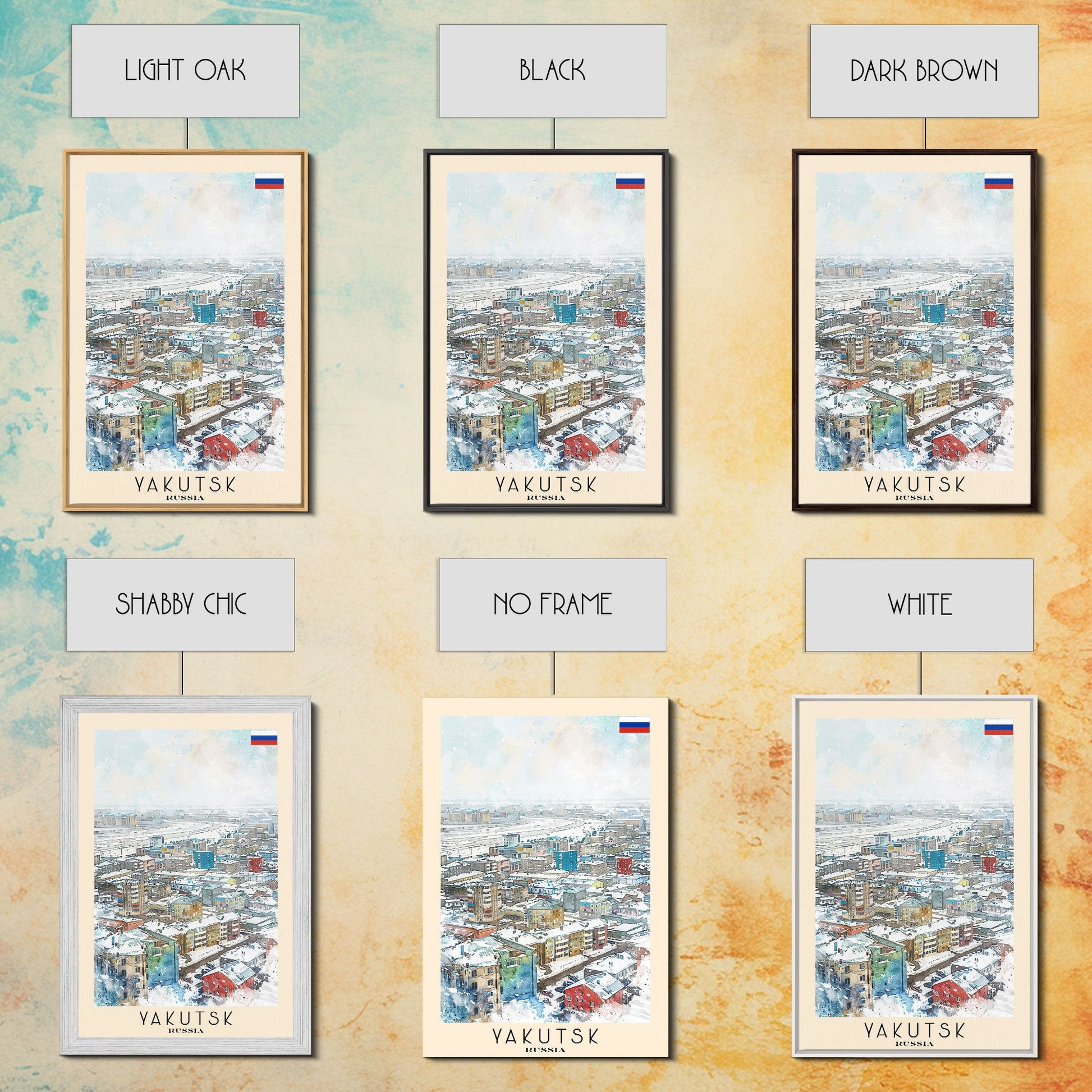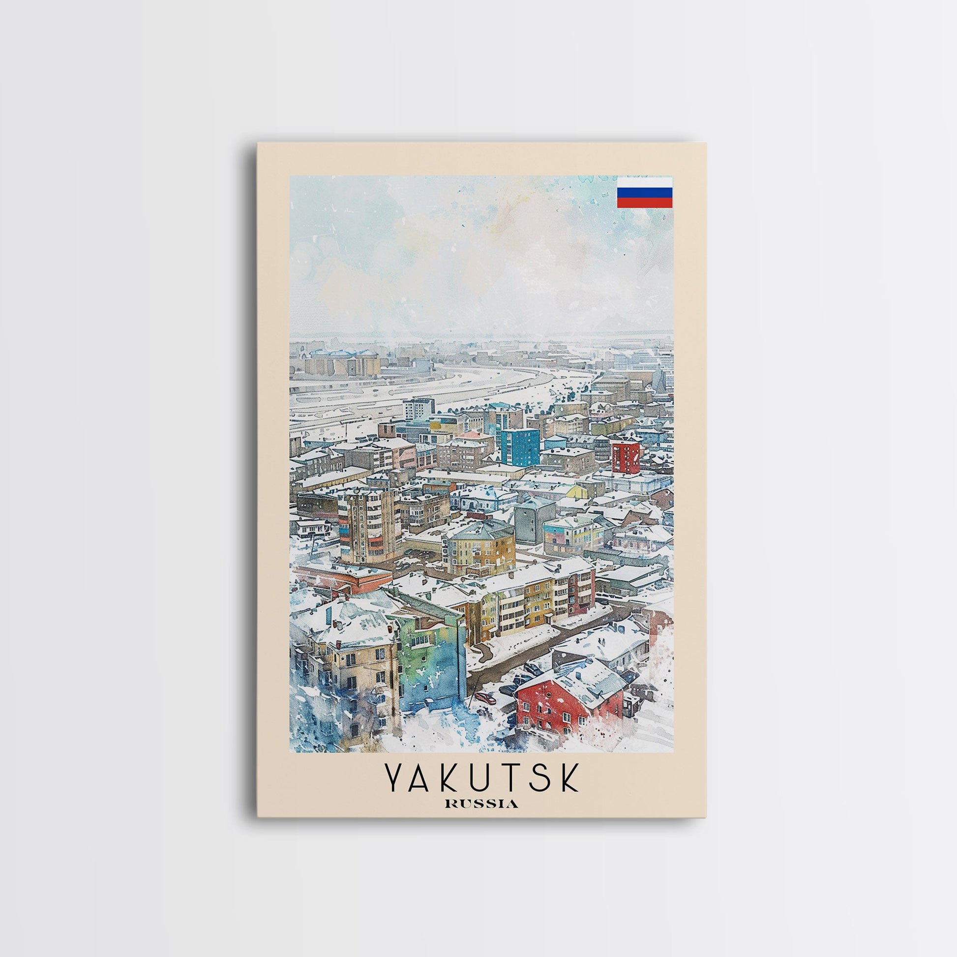 Yakutsk Russia Travel Poster Framed Canvas Print, Watercolor Painting, Scenic Wall Art, Home Decor, Russian Landscape, Unique Gift