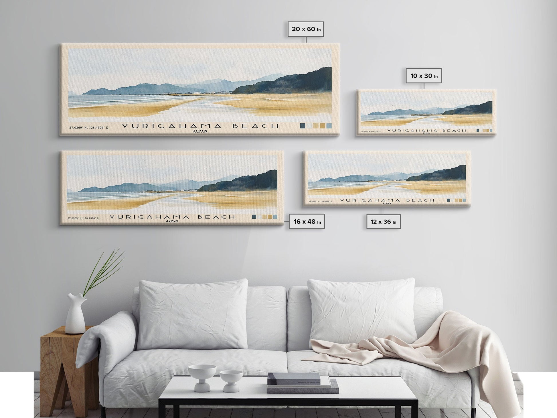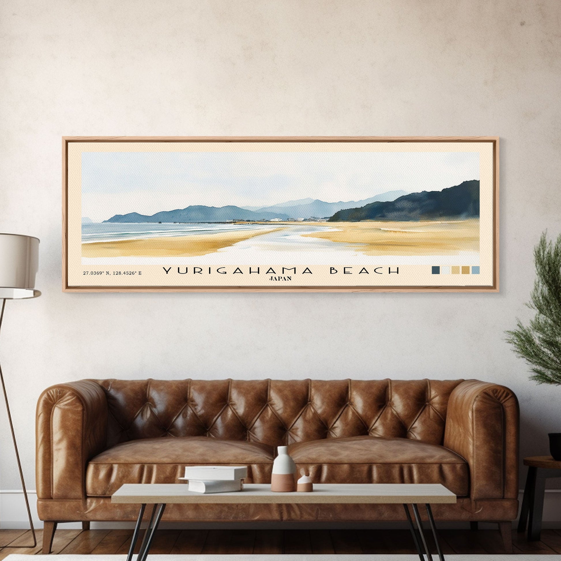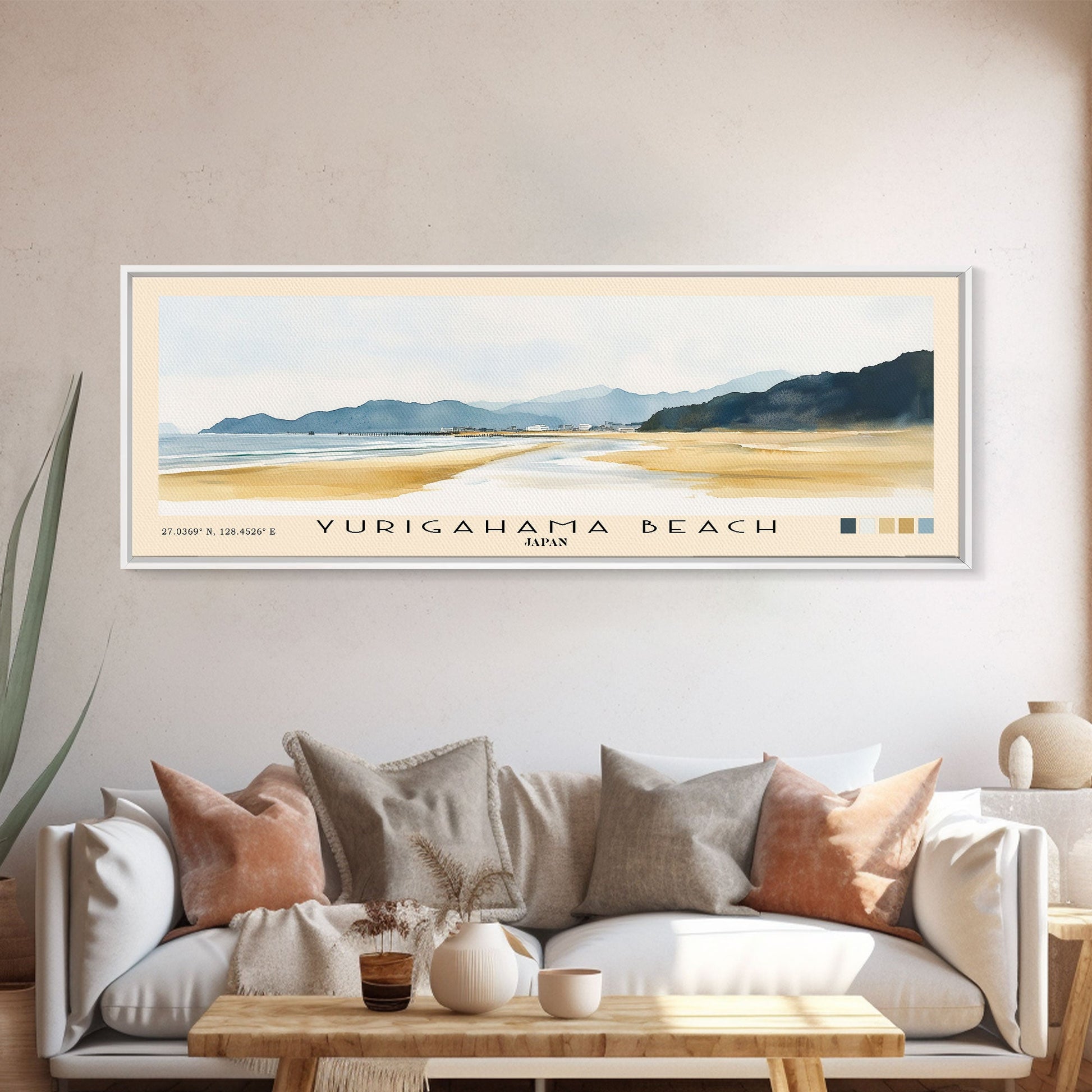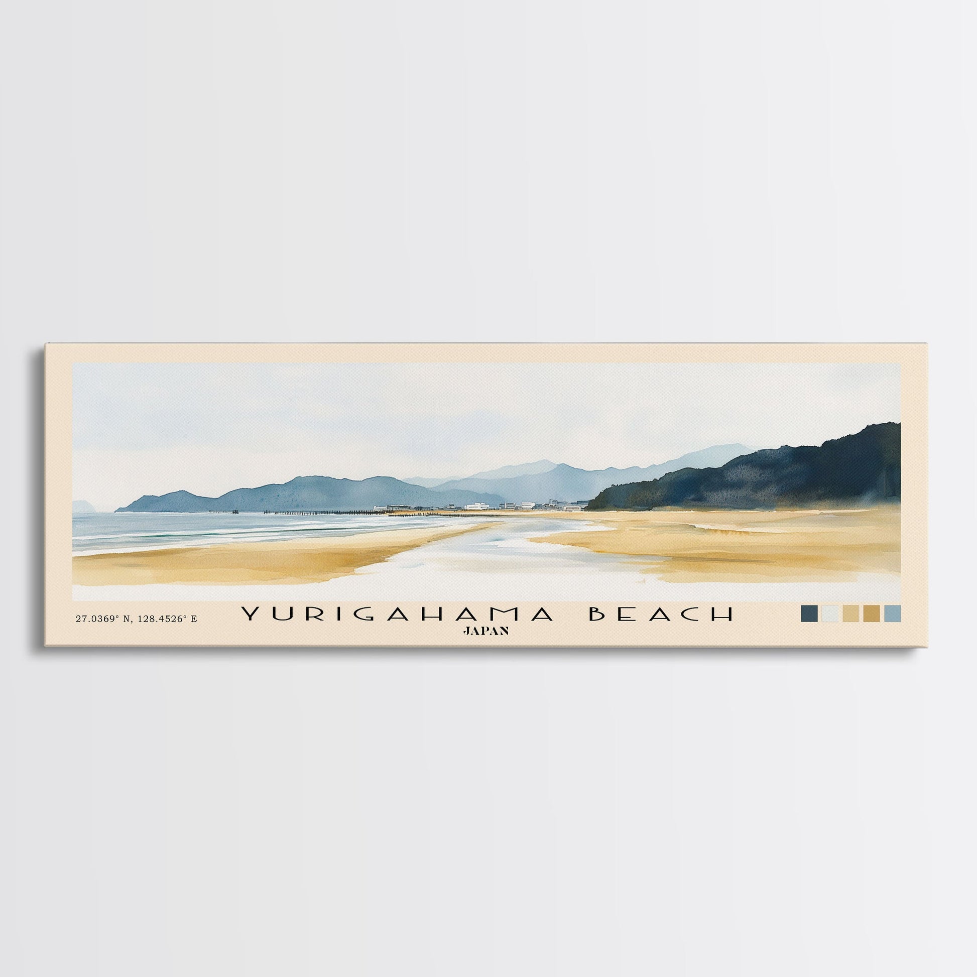 Yurigahama Beach, Japan Watercolor Beach Print, Vacation Gift, Japan Wall Art, Beach Painting, Beach Decor, Beach Painting