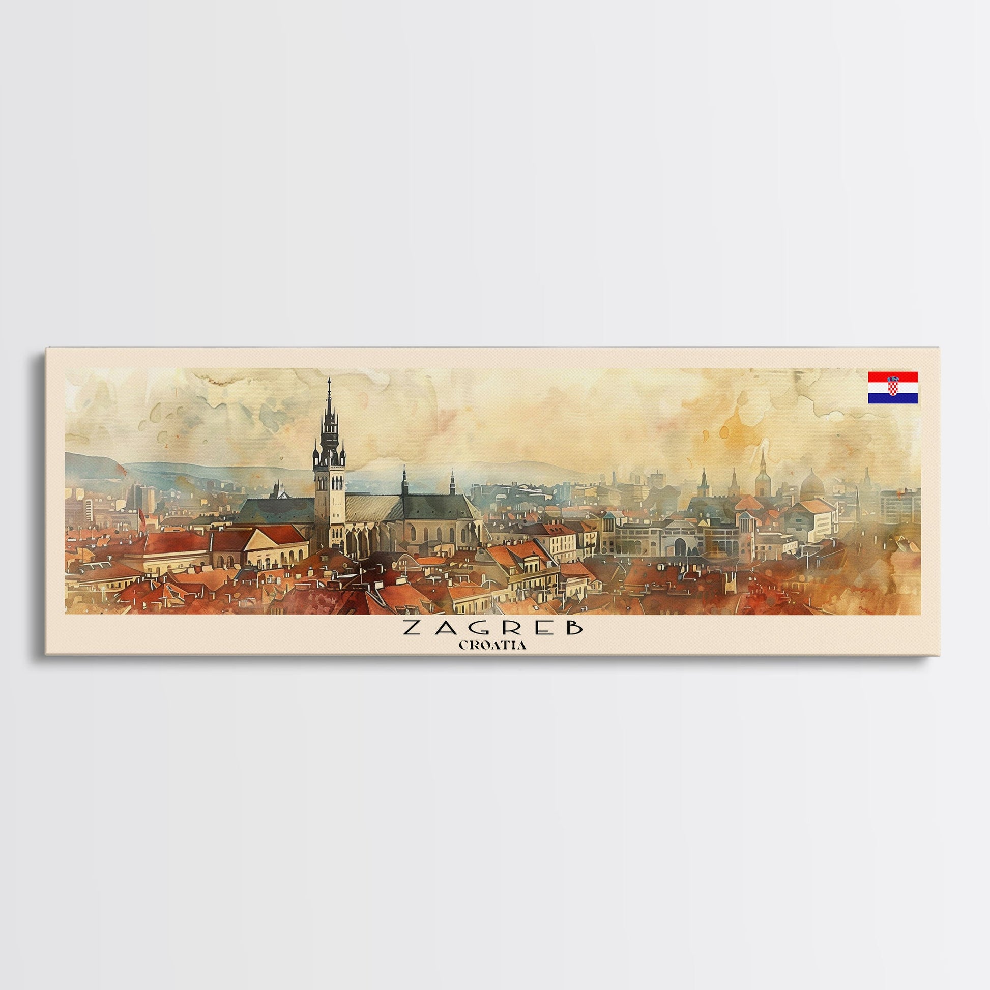 Zagreb Croatia Travel Art, City Art, Framed Canvas Print or Metal Wall Art, Europe Travel Poster, Panoramic Wall Art, Extra Wide Wall Art