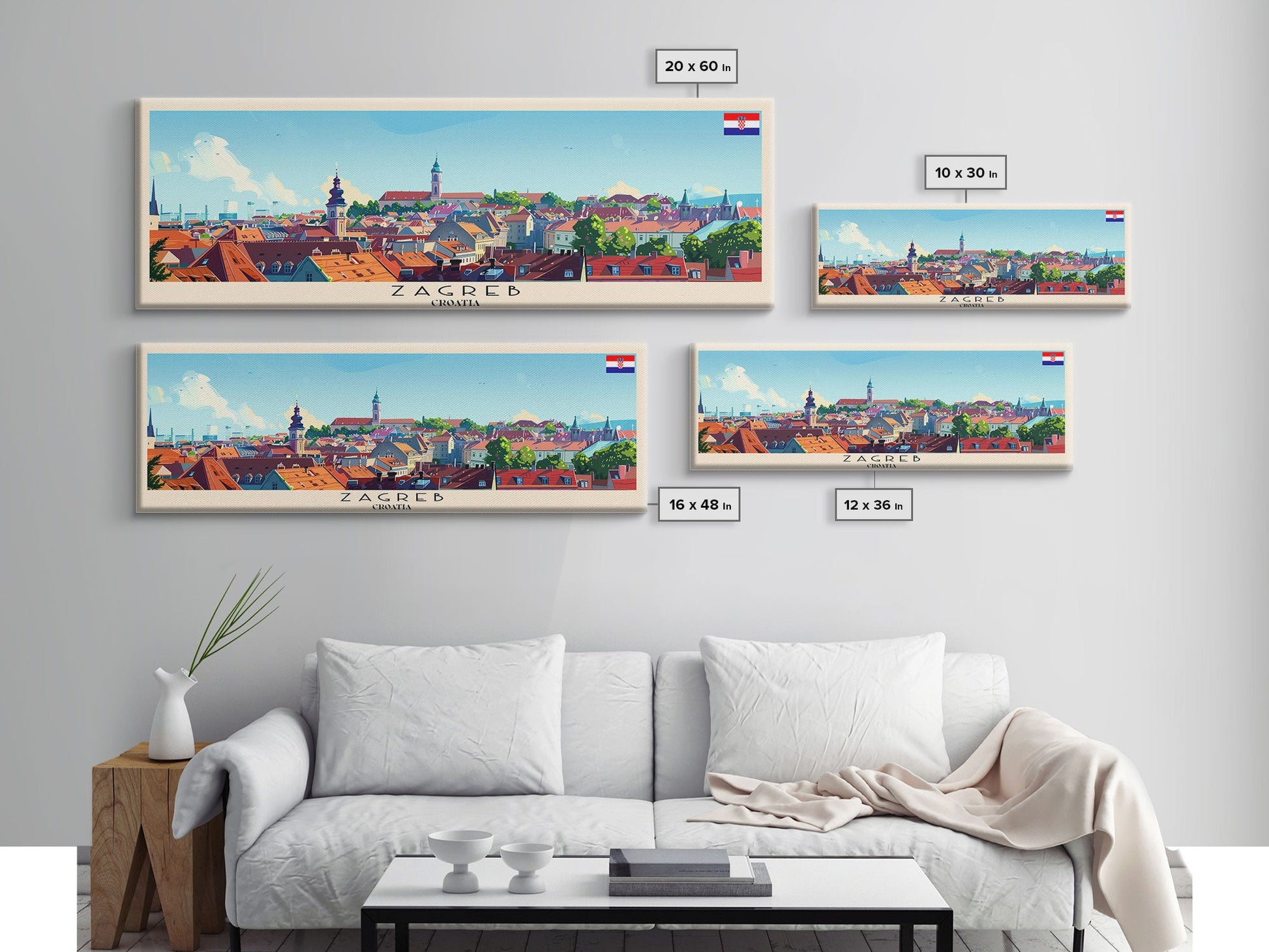 Zagreb Croatia Travel Art, City Art, Framed Canvas Print or Metal Wall Art, Europe Travel Poster, Panoramic Wall Art, Extra Wide Wall Art