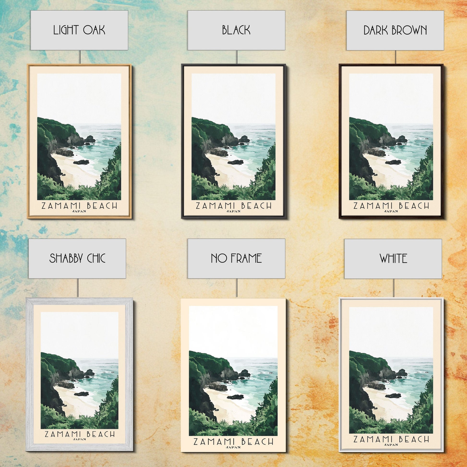 Zamami Beach, Japan Watercolor Beach Print, Vacation Gift, Japan Wall Art, Framed Canvas Print, Framed Beach Painting