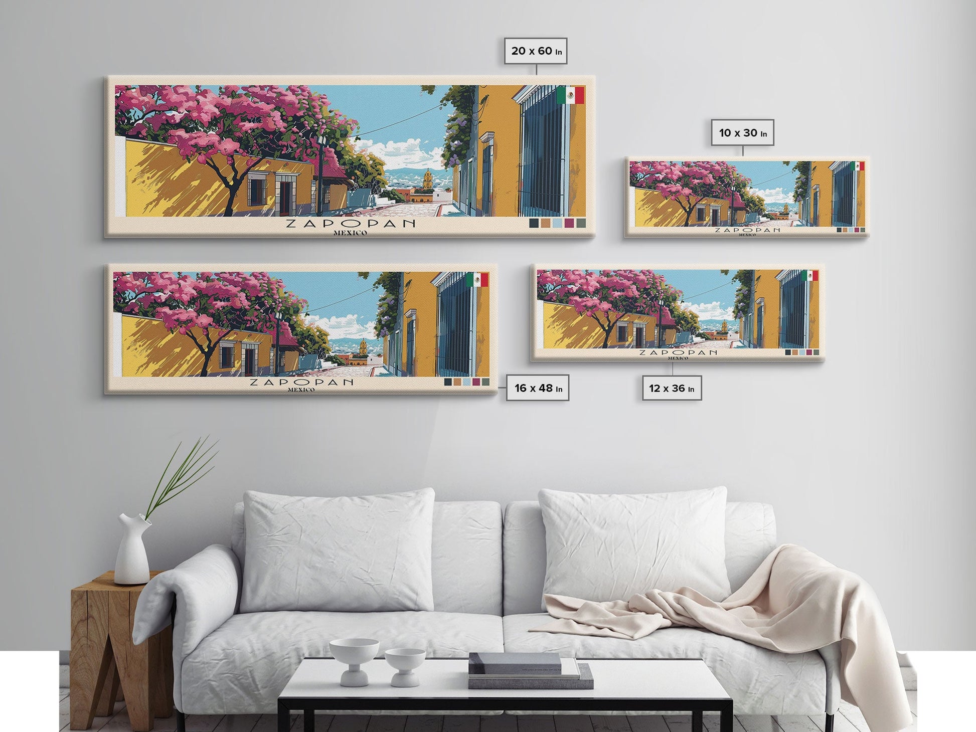 Zapopan, Mexico Panoramic Canvas Print, Zapopan, Mexico Painting, Mexico Art, Zapopan Travel Poster, Travel Art, Housewarming Gift