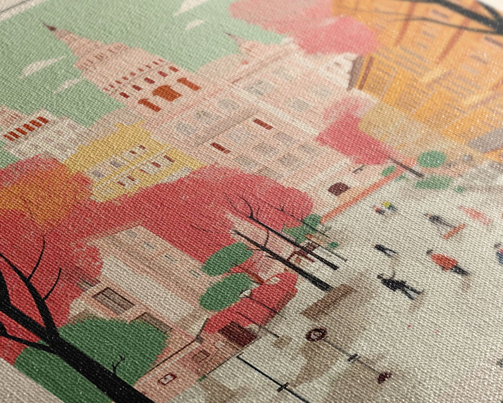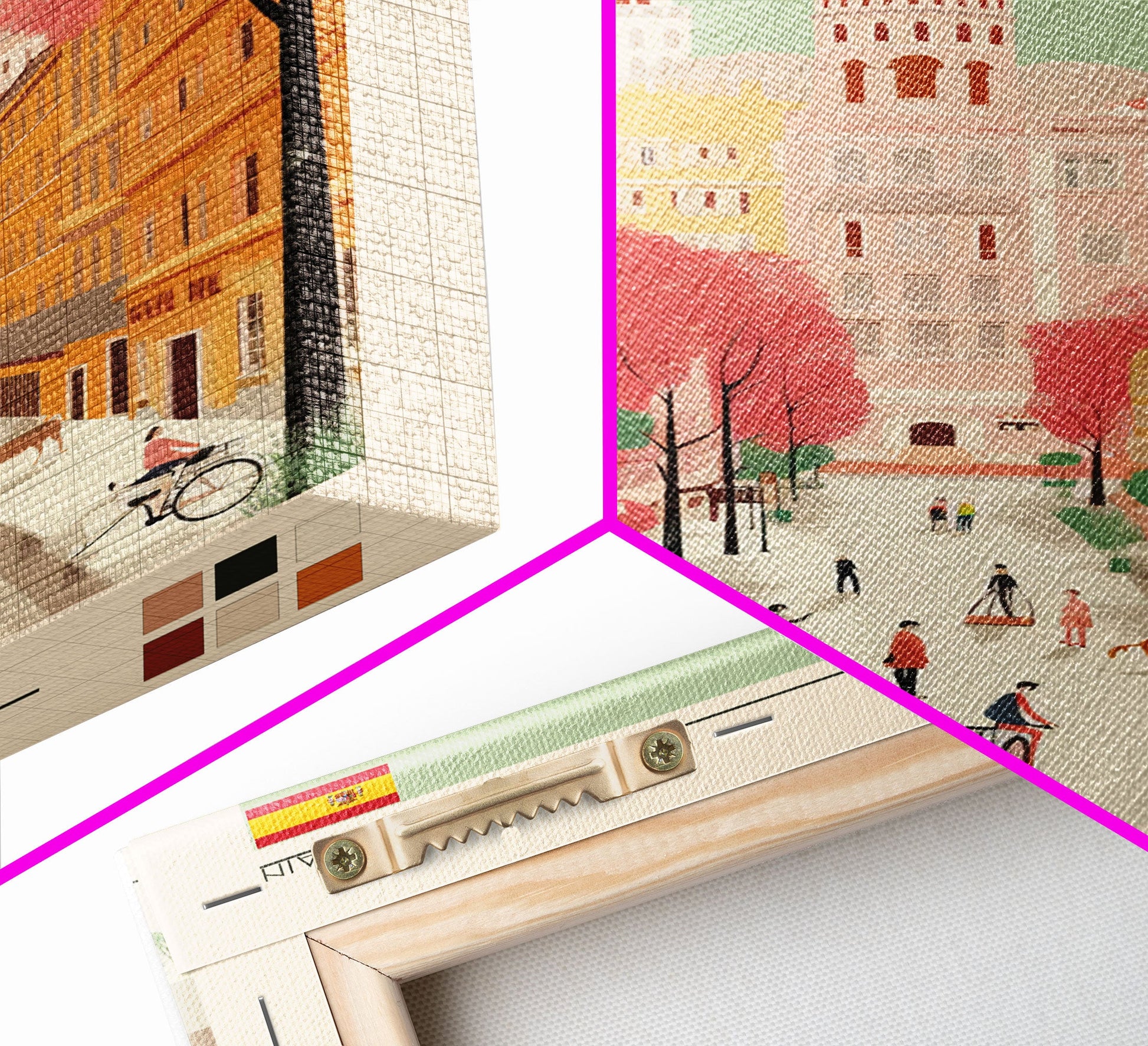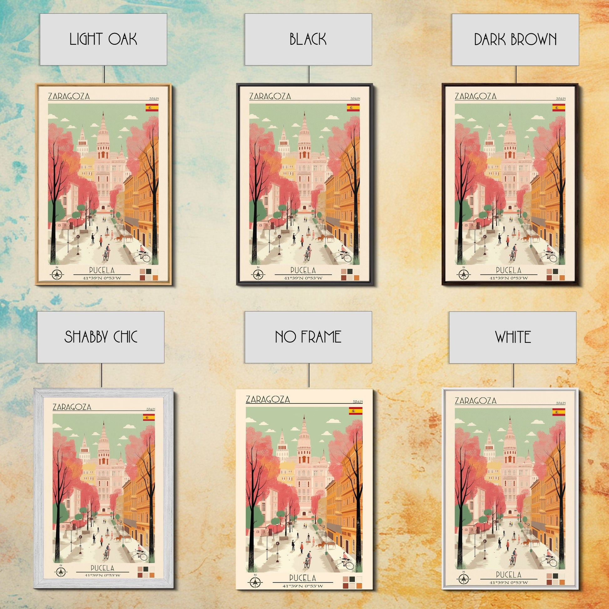 Zaragoza Spain Travel Poster Framed Canvas Print, Midcentury Modern Art, Pop Art Wall Decor, Living Room Art, Vacation Gift