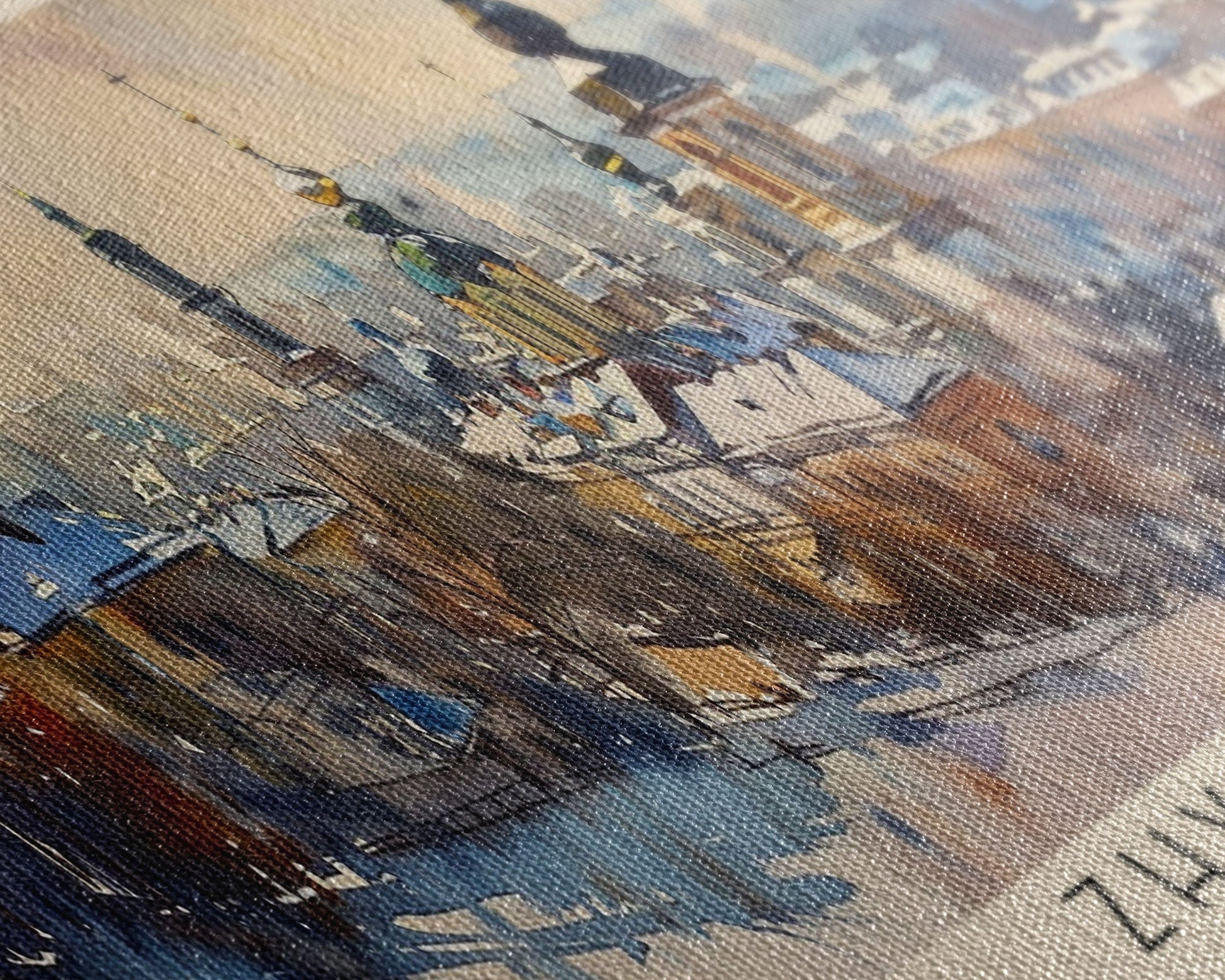 Most of our canvases are made in the USA, with the exception of canvases ordered with the light oak unstained frames, and any large canvases (24x48, 30x60, 16x48 and 20x60) ordered WITH a frame. These are temporarily made in and shipped from Europe, while we try to find a more consistent supplier in the USA.