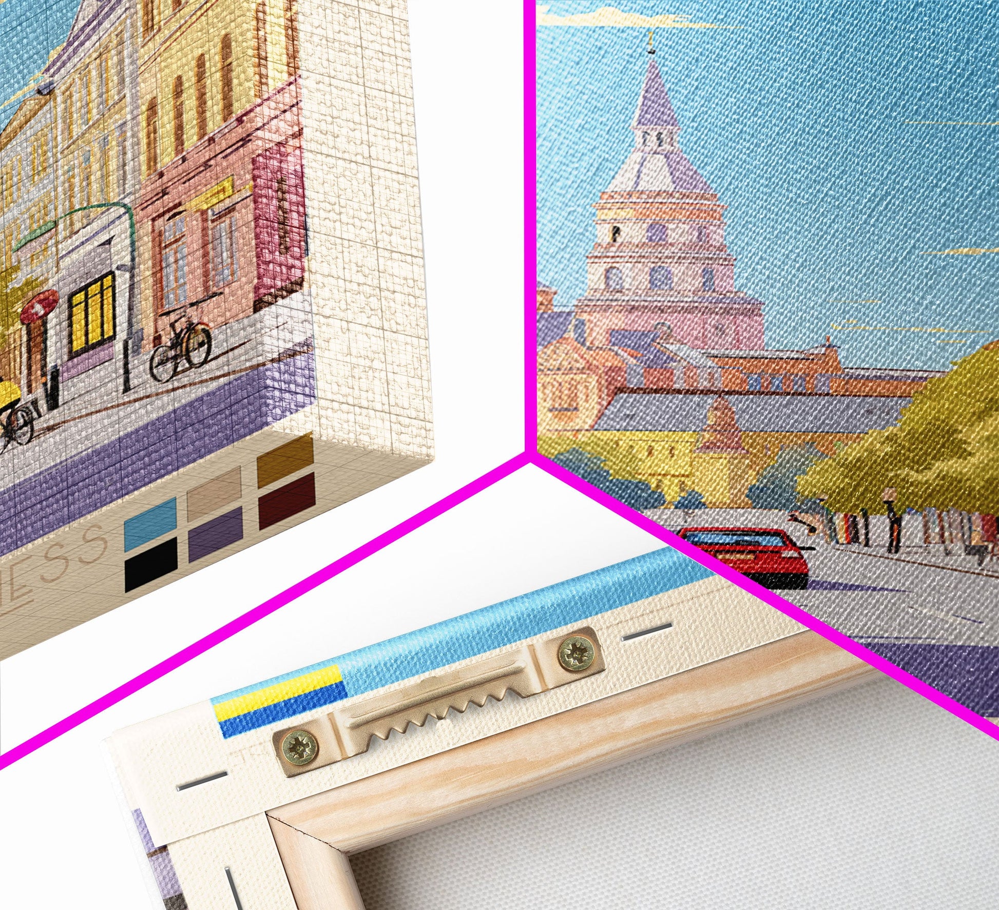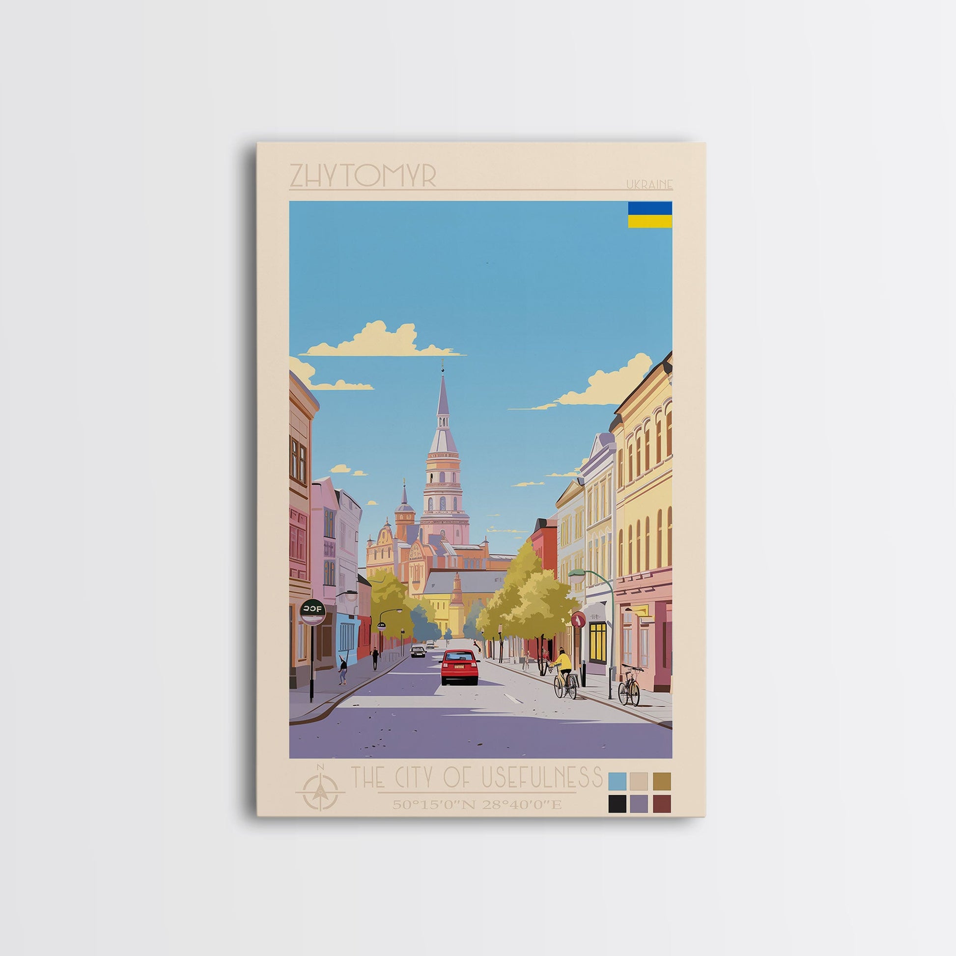 Zhytomyr Ukraine Travel Poster Framed Canvas Print, Midcentury Modern Art, Pop Art Wall Decor, Living Room Art, Home Decoration