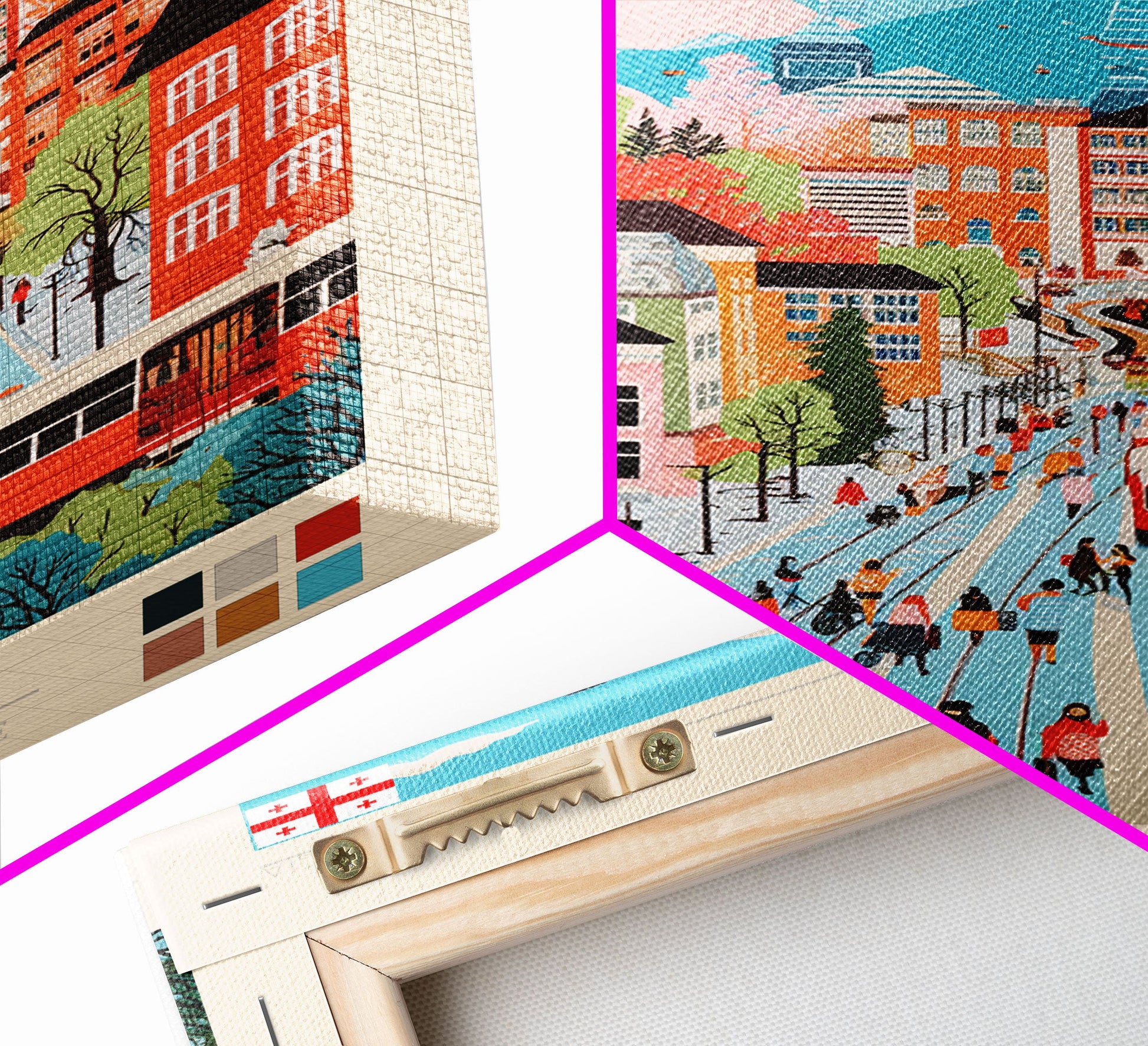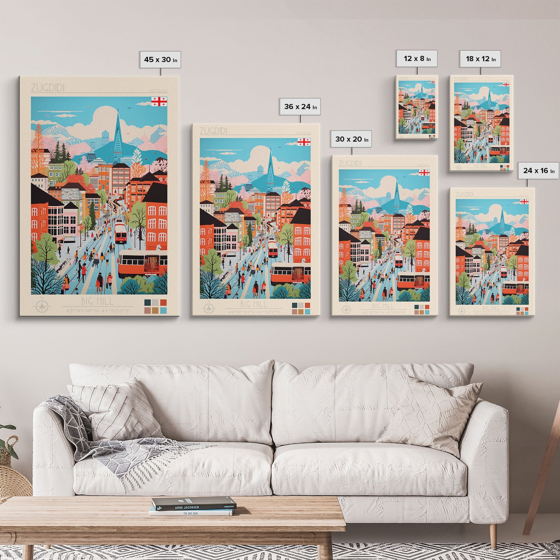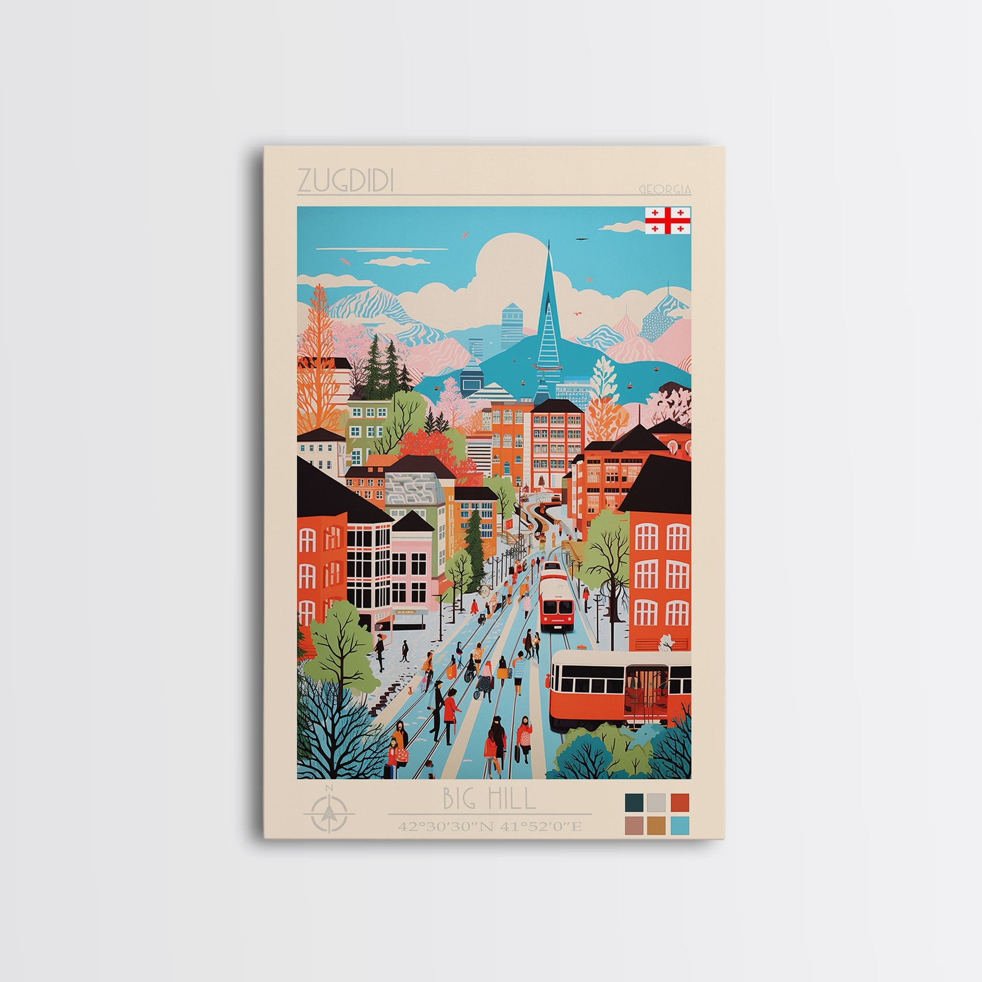 Zugdidi Georgia Travel Poster Framed Canvas Print, Midcentury Modern Art, Pop Art Wall Decor, Living Room Art, Vacation Gift